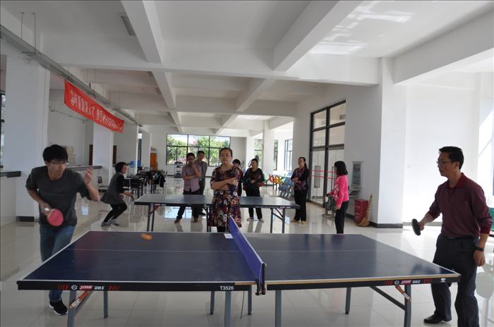 为贯彻全民健身计划,促进我校教职工群众性体育运动的深入开展,进一步提高教职员工的体育竞技水平,丰富校园文化体育生活,增强广大教职工体质,更好地推进精神文明建设和校园文化建设工作,2014年10月9日至2014年10月24日,学校工会组织开展了教职工第二届乒乓球比赛,本次比赛以工会小组为单位组队参加,15个工会小组分男女队,共有90位教职工参加比赛。