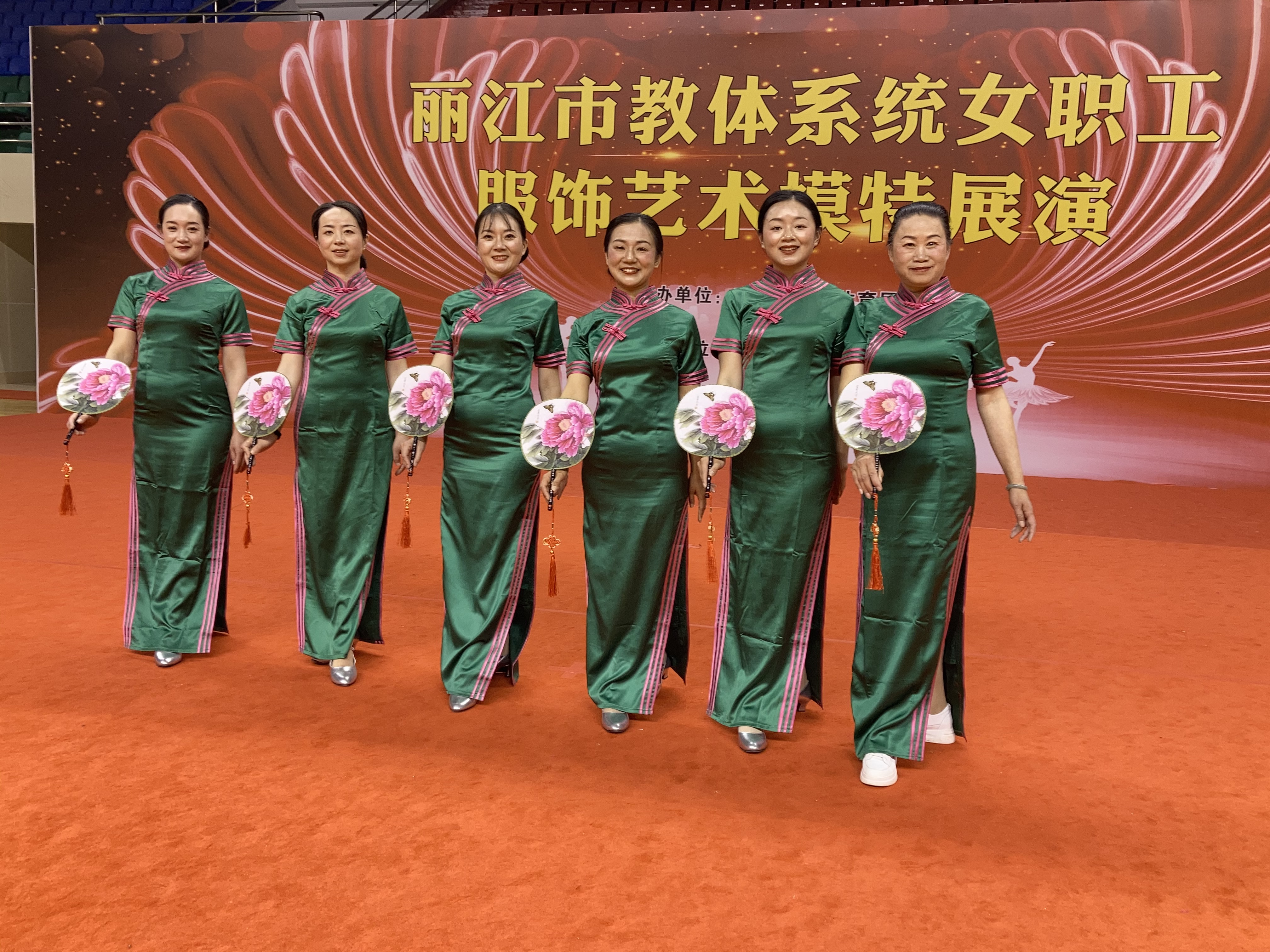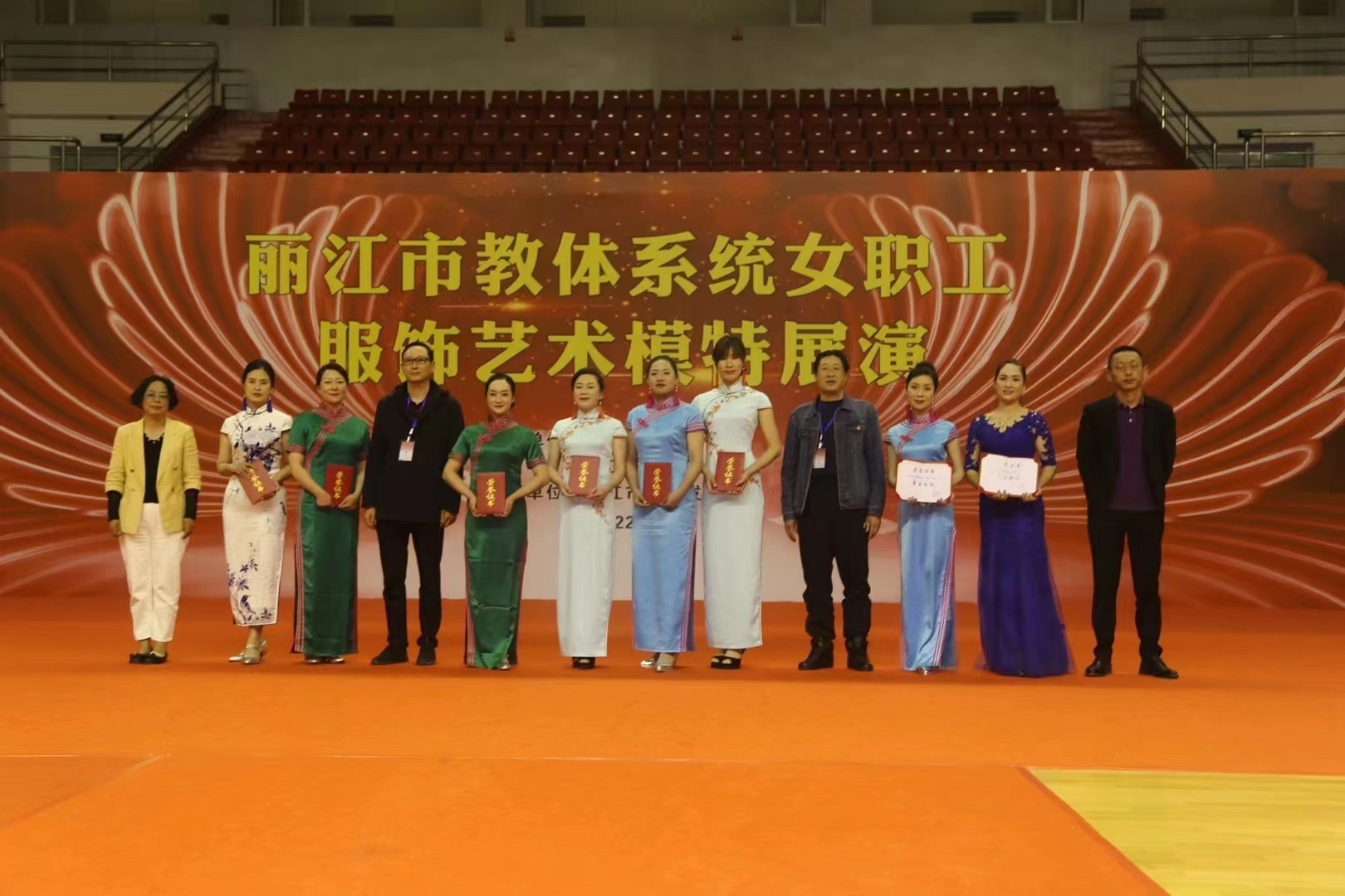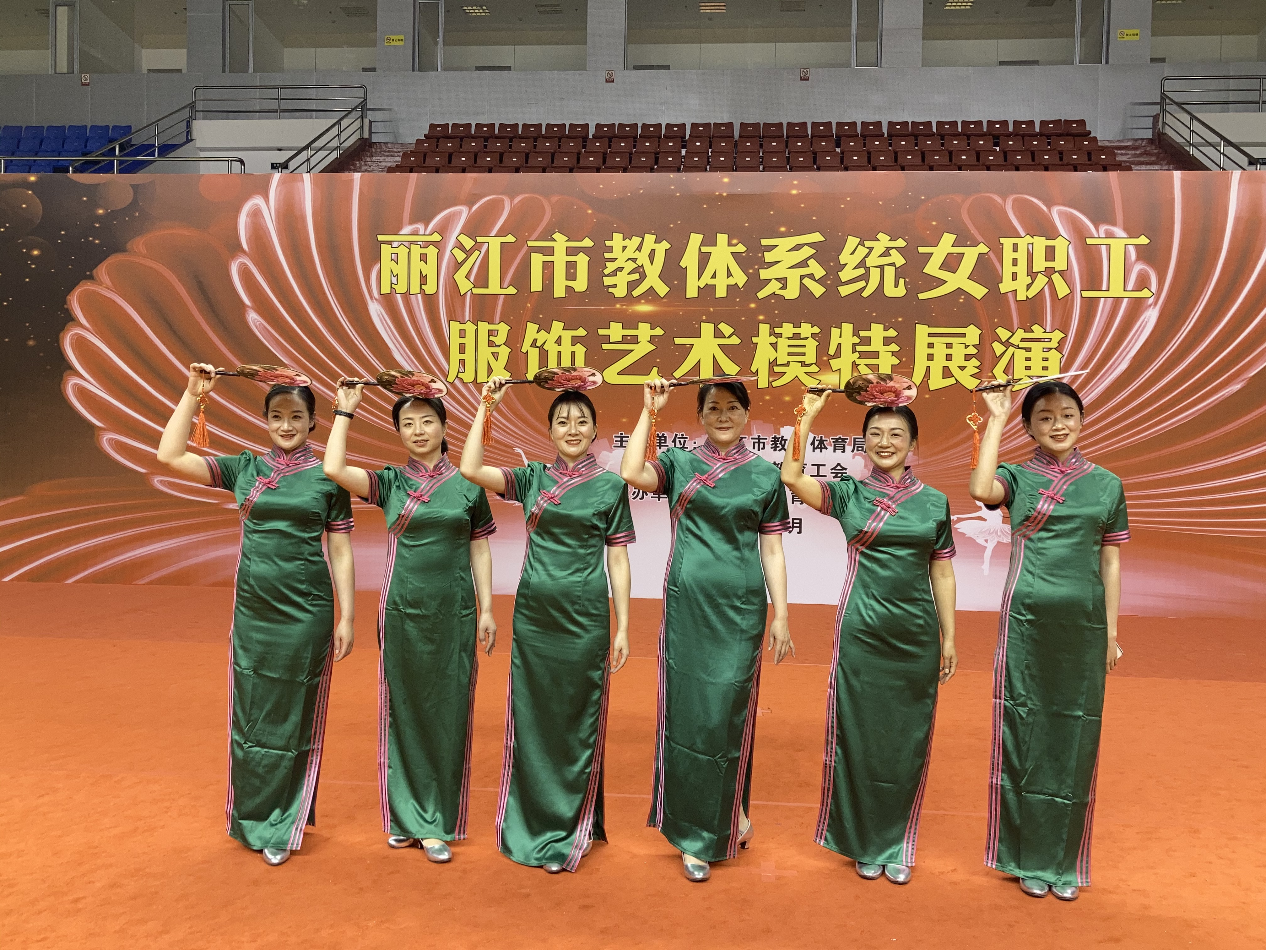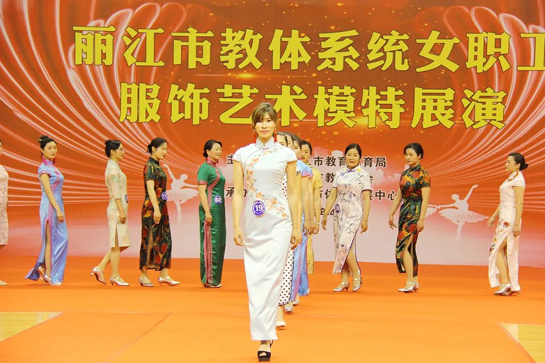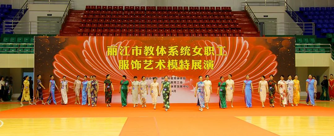 4月26日下午,由丽江市教育工会主办的全市教育体育系统2022年女职工“服饰艺术模特”展演活动在丽江市体育发展中心体育馆举行。来自丽江市教体系统机关工会、县(区)及市直学校等全市教体系统共计12支队伍200余人参加了展演。市老年大学、市老体协艺术团也派出代表队前来助阵。市人大、市政协、市妇联、团市委、市教体局、以及市教育工会、市老年大学等部门相关领导出席活动并观看展演。我校由李慧芹、张莉、田雪婷等12位女教职工组成的展演队代表学校参加活动。