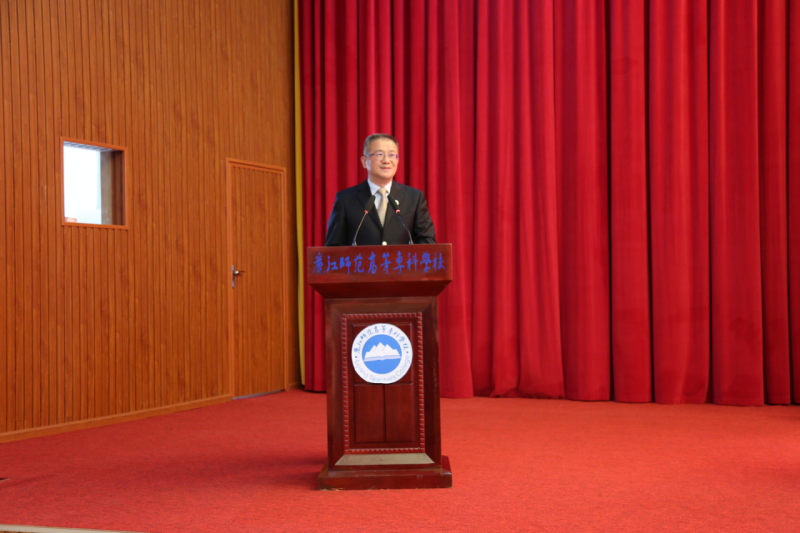 最后,张祖武作了题为“培根铸魂育新人 昂扬奋发迎盛会”的讲话。他指出,一是强化政治引领,凝聚奋进力量,以昂扬向上的精神面貌迎接党的二十大胜利召开。要全面贯彻习近平新时代中国特色社会主义思想,深刻领会“两个确立”的决定性意义,增强“四个意识”、坚定“四个自信”、做到“两个维护”,始终牢记“国之大者”,在全面建设社会主义现代化国家的新征程中勇担培根铸魂育人的历史使命,在新时代新征程上续写丽师新篇章、创造丽师新辉煌。二是学习典型模范,弘扬高尚师德,以立德树人的扎实行动培根铸魂育时代新人。要牢记教育的责任与使命,做传道授业解惑的引路人;要探索教学的理念和方法,做教学改革创新的先行者;要坚守教师的道德与情操,做学生灵魂的塑造者。三是认真履职尽责,勇于担当作为,以只争朝夕的干劲推动学校高质量发展。第二次党代会以来,全校师生员工凝心聚力、攻坚克难、拼搏奋进,信心大提升、作风大转变、改革大阔步、内涵大提质、硬件大扩容,跑出了“丽师之变”加速度,这是一代又一代丽师人在平凡的教学、管理、服务岗位上忠于职守、辛勤工作、为人师表、无私奉献、担当作为的结果。在新的“赶考”路上,全校教师要以只争朝夕的干劲和时不我待的斗志,跑出加速度、干出好成绩、成就高质量,促进学校“长大长壮长美”和“发展提升”,以实际行动推动学校早日实现升本目标,以优异成绩迎接党的二十大胜利召开!