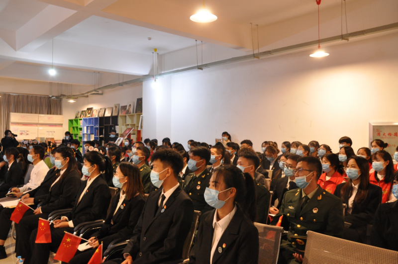校团委组织团学干部、学生代表在图书馆“书吧”集中收听收看。