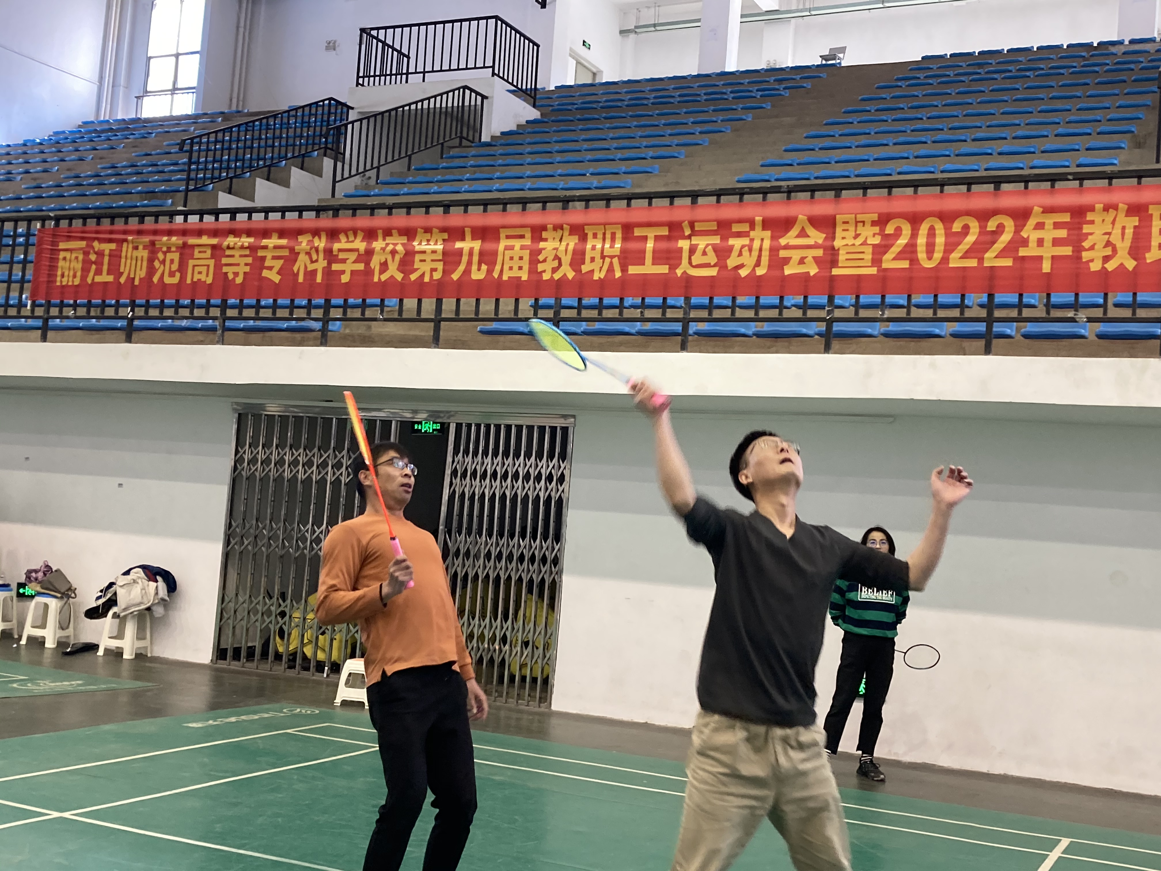 为贯彻落实健康中国和全民健身国家战略,丰富校园文化生活,加强和增进教职工之间的交流和友谊,展现丽师人积极进取、拼搏向上的精神风貌,由我校工会主办,体育与健康学院协办的教职工羽毛球团体赛于11月24日拉开帷幕。12月7日中午,丽江师范高等专科学校2022年教职工运动会暨2022年教职工羽毛球团体赛在校体育馆进行完最后两场第一名、第三名争夺赛后圆满落幕。