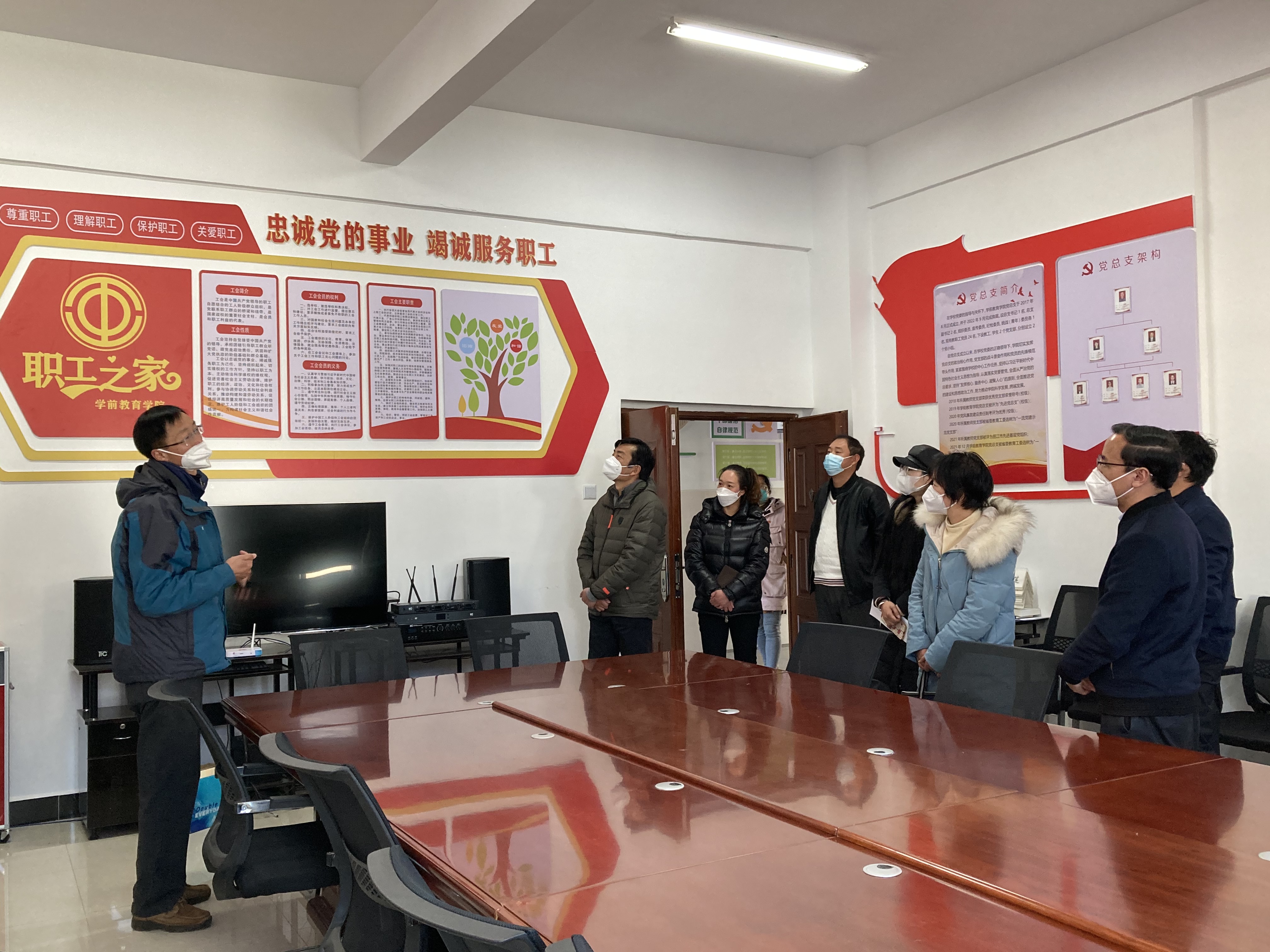 1月4日下午,丽江市总工会党组成员、副主席吉克木呷、市总工会组织宣传部部长董国华等一行三人到我校开展“党建带工建 工建服务党建”示范点创建工作调研及验收工作。我校党委副书记、工会主席彭鸿昌、工会专职副主席姚宏武、组织部相关人员陪同参加调研及验收活动。