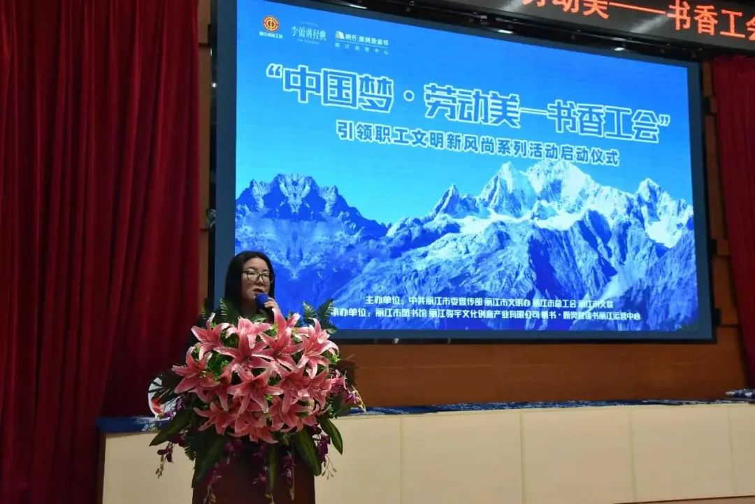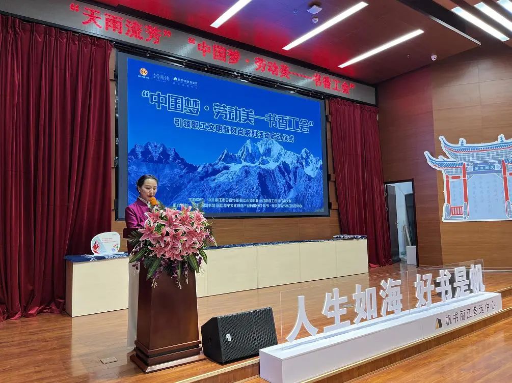 丽江市总工会党组书记、常务副主席郭秀芬在启动仪式上致辞时指出,开展“中国梦·劳动美——书香工会”引领职工文明新风尚系列活动,目的就是全面贯彻党的二十大精神和习近平总书记关于工人阶级和工会工作的重要论述和指示批示精神,全面贯彻落实云南省总工会《关于深入学习贯彻党的二十大精神组织动员广大职工为开创新时代云南社会主义现代化建设新局面团结奋斗的决议》精神,进一步增强工会组织的政治性、先进性和群众性,防止工会组织机关化、行政化、贵族化、娱乐化,增强干部职工思想道德建设,不断提升新时代工会的组织力、凝聚力、影响力,团结引导广大职工群众厚植家国情怀、涵养良好家风,坚定理想信念,坚定不移听党话、矢志不渝跟党走。